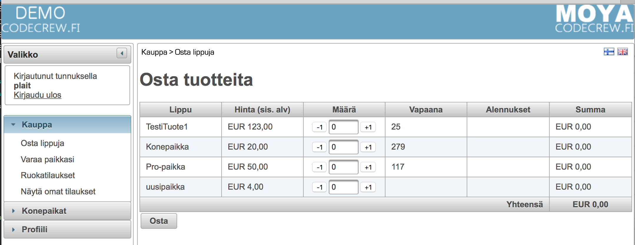Aukiolevan sivun murupolun näyttäminen, esim. "Kauppa > Osta lippuja"