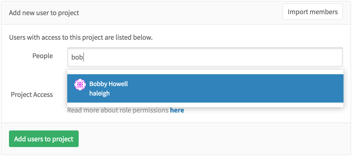 Once done, hit Add users to project and they will be immediately added to your project with the permissions you gave them above.